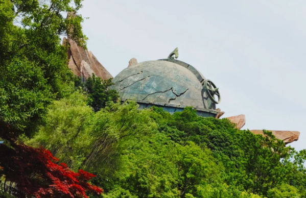 山?;ň场⒚赖襟@艷的喜泉閣,大伙都忍不住停下腳步打卡拍照。